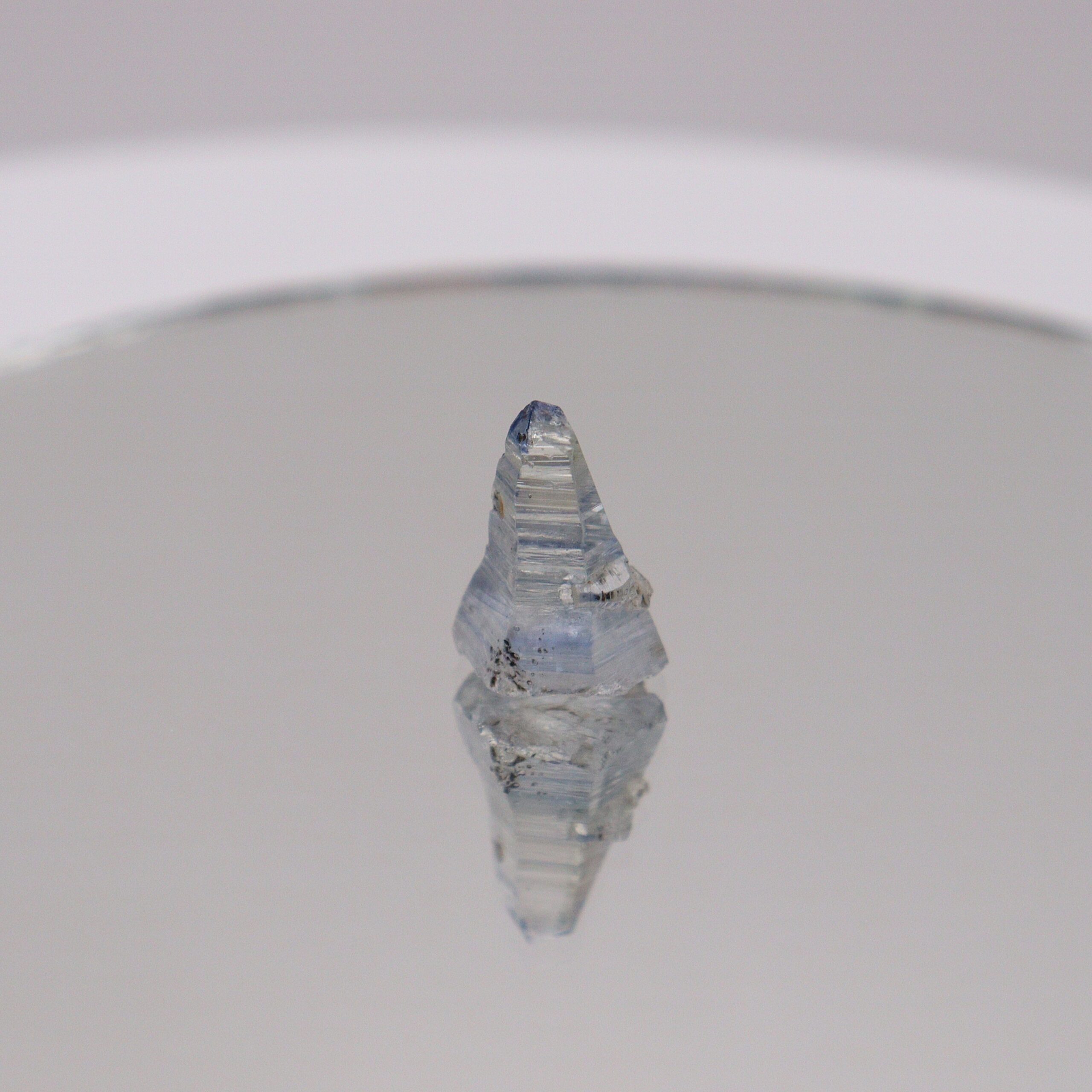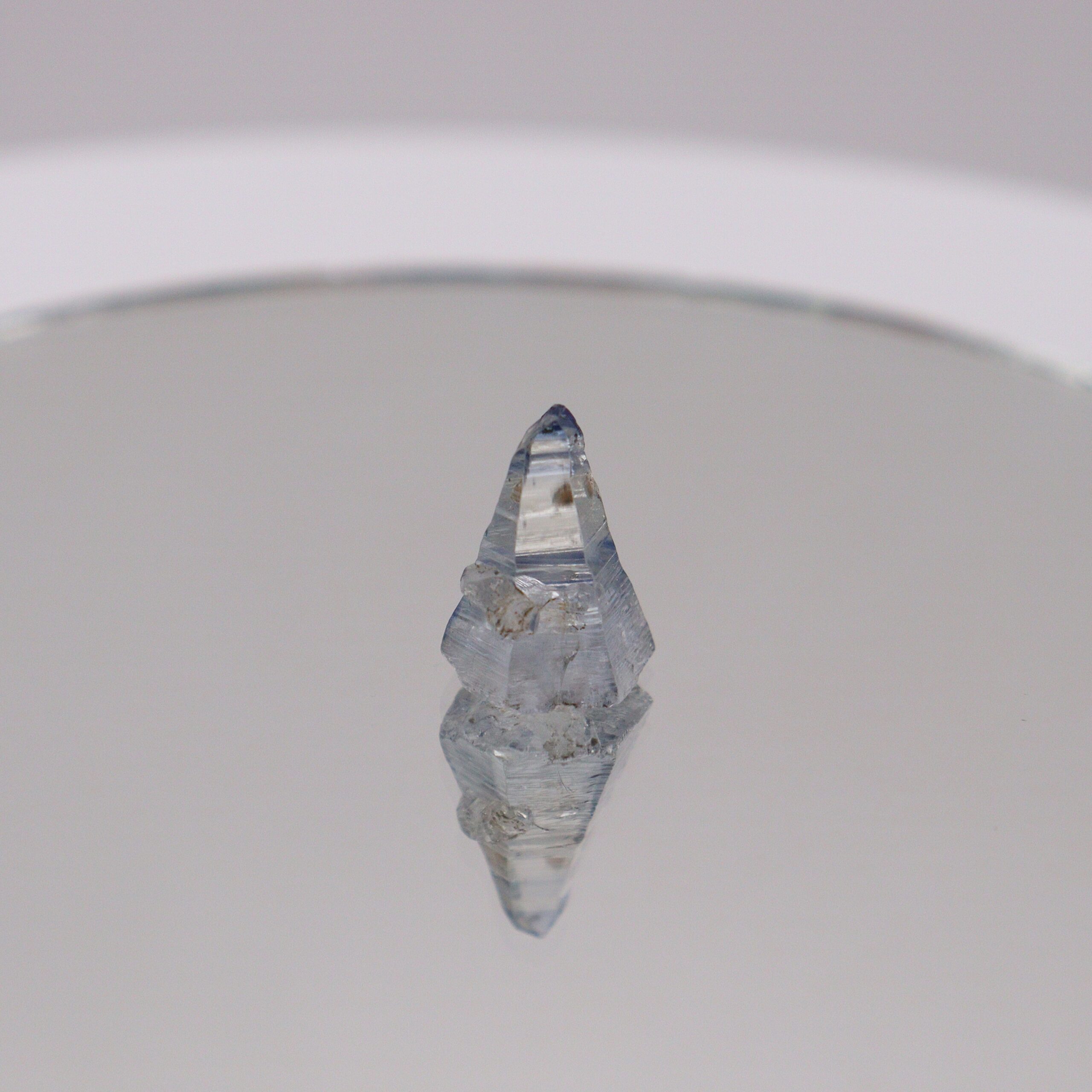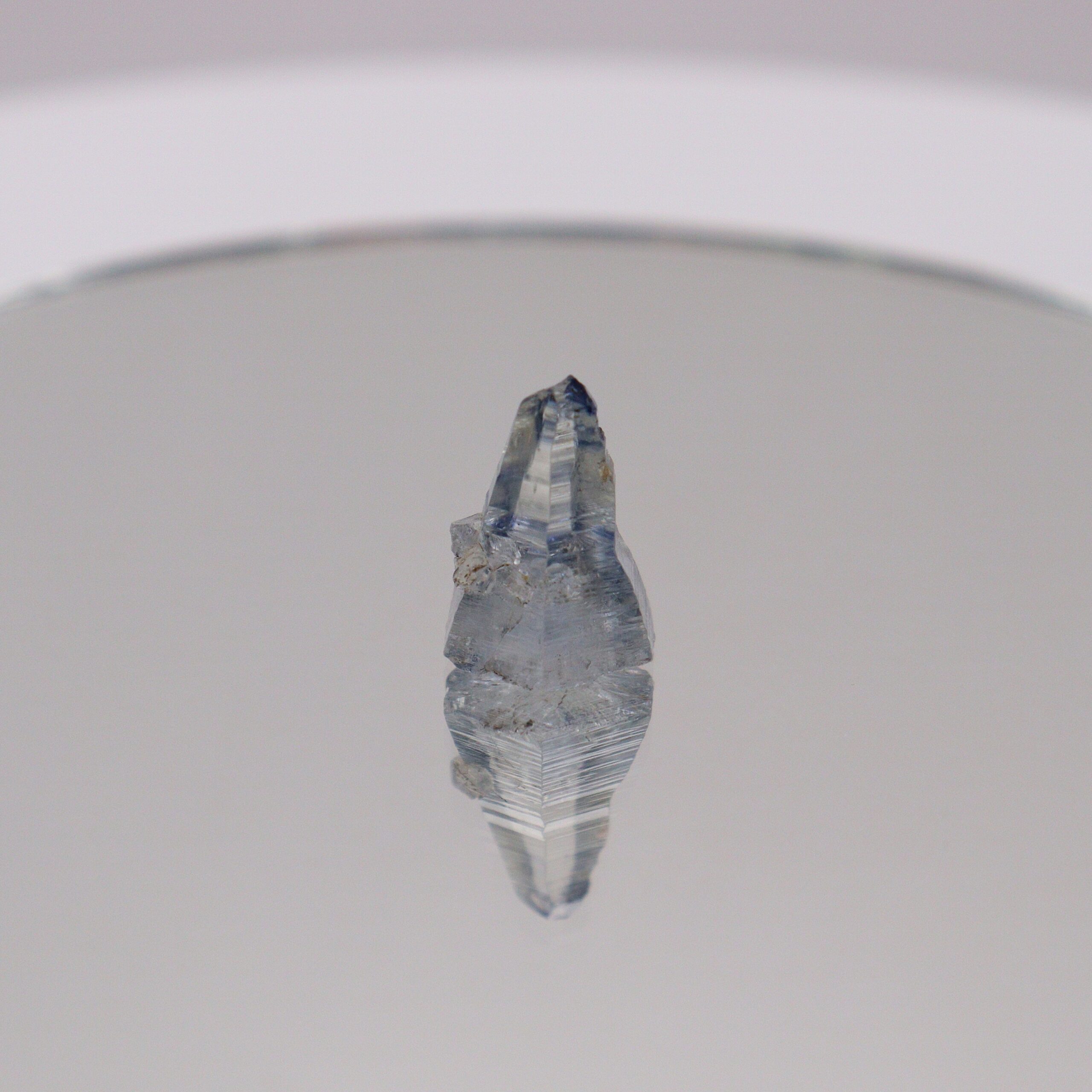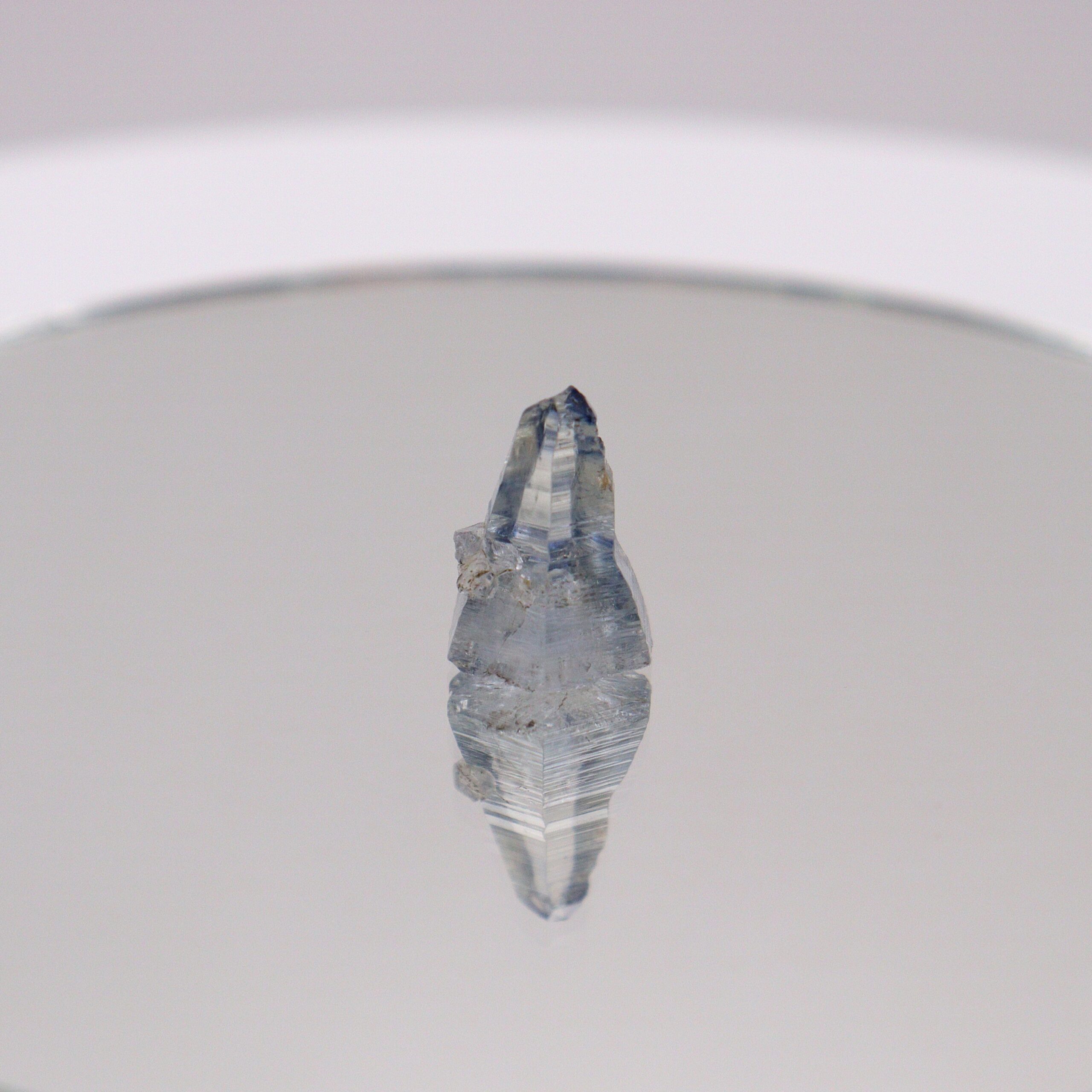 This beautiful natural rough sapphire features a soft light blue color and a striking crystal form reminiscent of a small pyramid. Sourced from Sri Lanka, this gemstone has been left completely natural and unheated, preserving its authentic crystal structure and natural beauty.