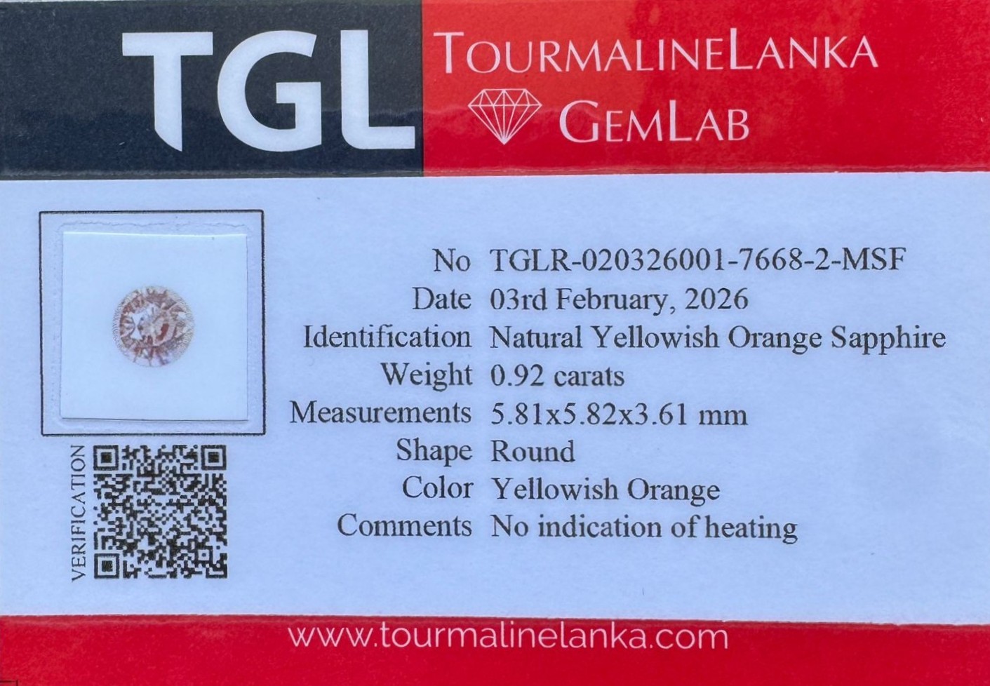 Sourced from Sri Lanka and left completely unheated, this 0.92 ct round brilliant sapphire displays a delicate harmony of golden yellow, soft apricot, and warm peach tones — a color palette reminiscent of a late summer sunset. Unlike mass-treated stones, this sapphire’s beauty is entirely natural. Its glow is not created in a laboratory or enhanced by heat — it is the result of nature alone.