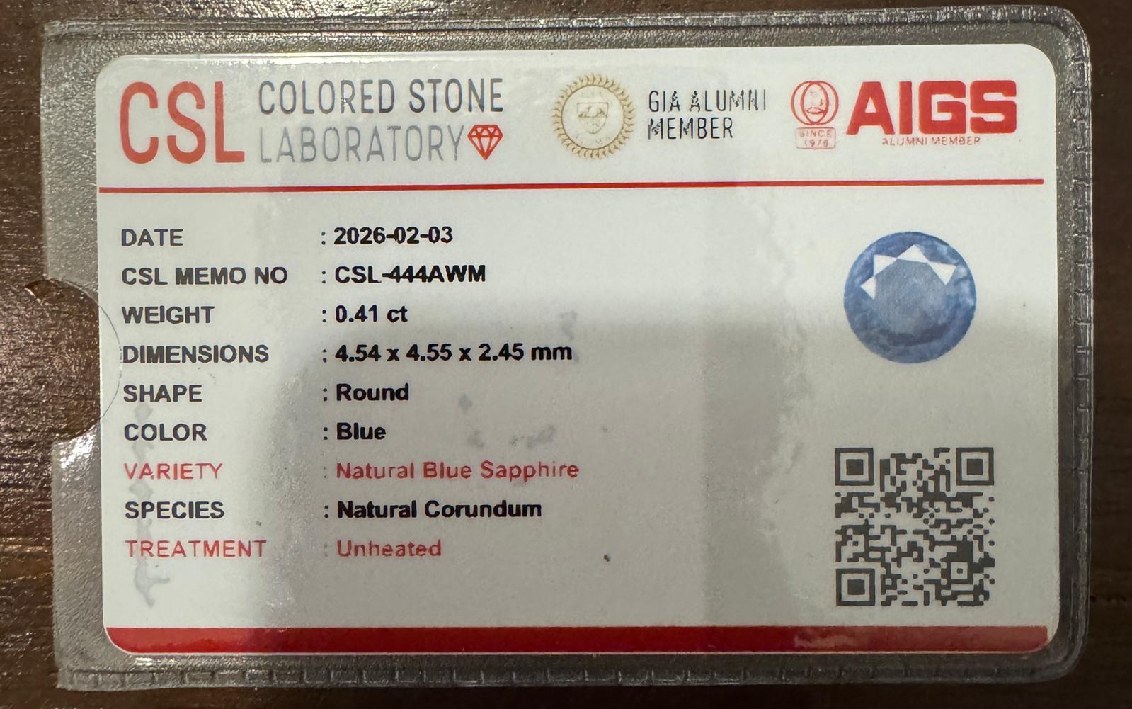 Unheated Natural Sri Lankan Blue Sapphire – 0.41ct Round