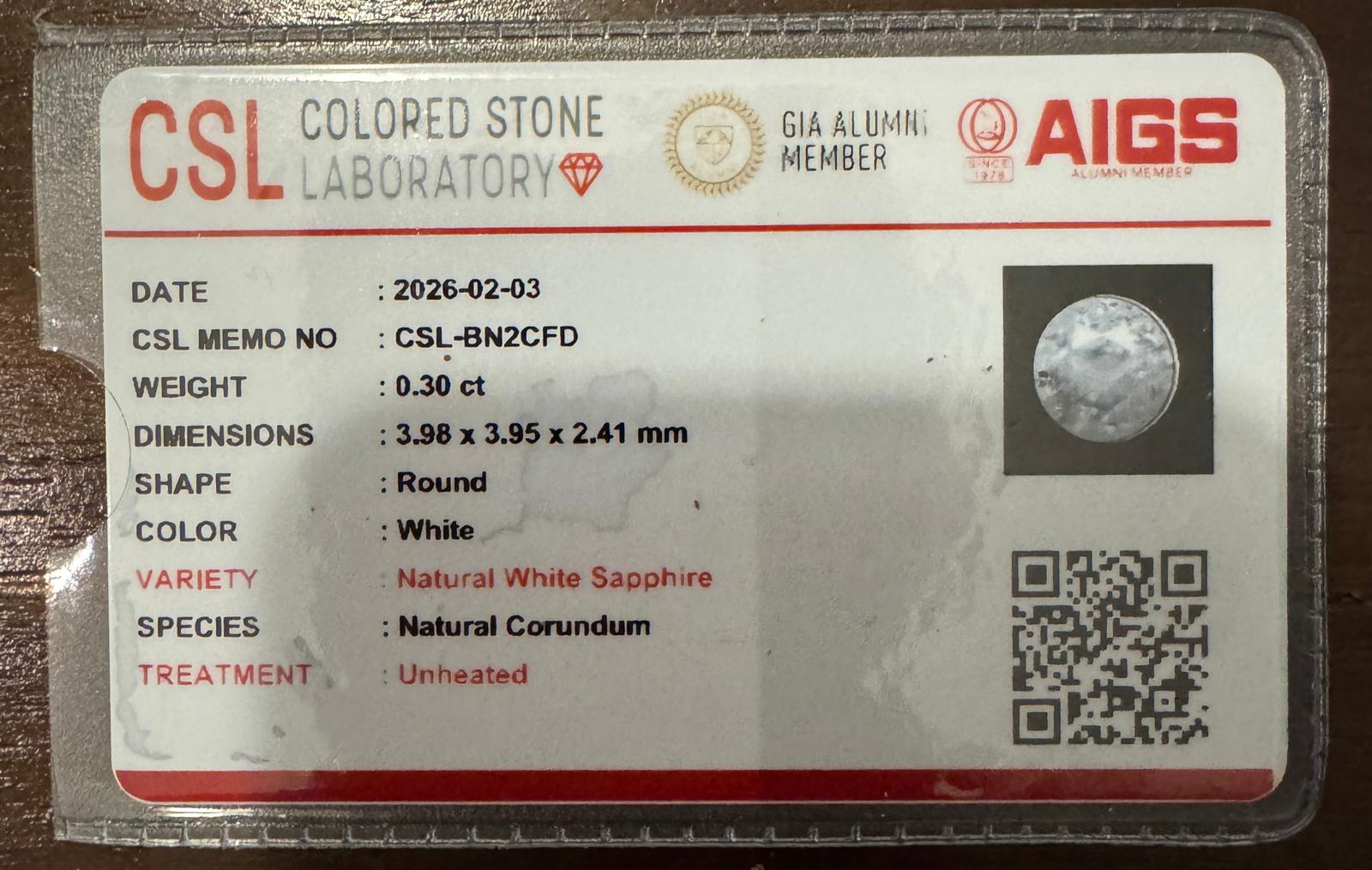 Unheated Natural Sri Lankan White Sapphire – 0.30 ct Round